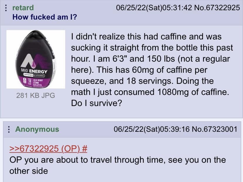 So more like ~1/4 towards potential death level amount. Bro is never gonna touch caffeine again after riding this out