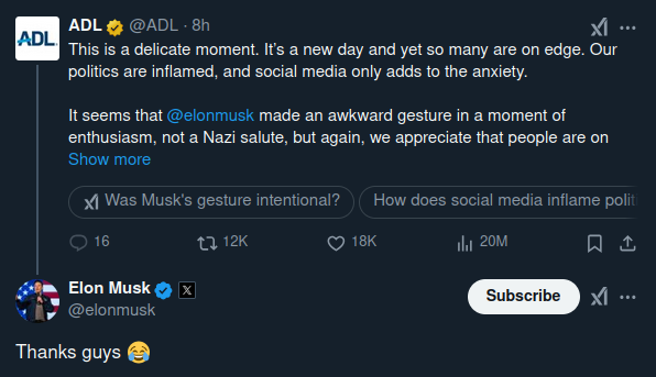 geneva_convenience@lemmy.ml to Mildly Infuriating@lemmy.worldEnglish · 11 months agoADL defends Nazi salutelemmy.mlimagemessage-square165linkfedilinkarrow-up1752arrow-down119