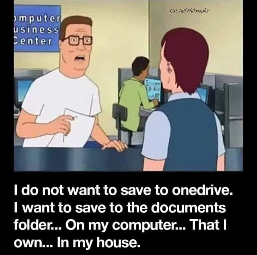 Something to keep in mind though: at the end of the day, none of the work stuff is yours. You have no control over it and never will. Store your files the way the company wants you to store them, because if it gets deleted or corrupted or whatever, it’s not your problem. I’m stuck with Windows 11 and Onedrive on my work laptop, but I don’t give a shit because it’s not mine.
