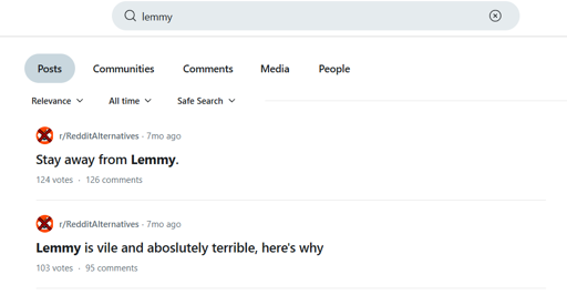 https://www.reddit.com/r/RedditAlternatives/comments/1e0xugs/stay_away_from_lemmy/