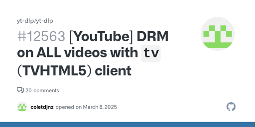Of course. The YT-DLP team by refusing to support DRM videos gave Google a huge neon sign that said this is the one thing that will shut them down, the line they won’t cross. Google has targeted the big front end instances with rate limits and blocks and this is the next step.