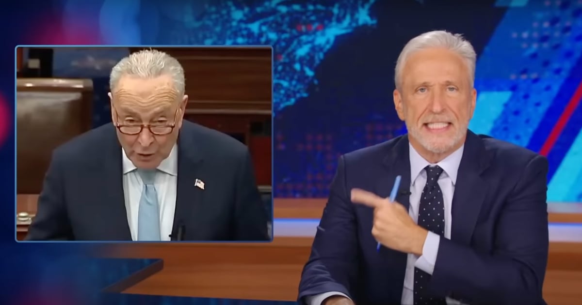 On The Daily Show, Stewart mocked Schumer for surrendering leverage without gaining anything in return, joking that he “got some cheese.”