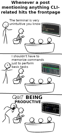 Your stance also de-emphasizes the difficulty of learning CLI for the first time. It’s not the most difficult thing ever, but it can be fairly frustrating. It’s not something you want to deal with when just trying to unwind after work on your PC, or while you’re trying to do your job at work. I think it’s pretty reasonable most people don’t want to have to learn yet another paradigm just to do what they’ve already figured out how to with a P&CI.