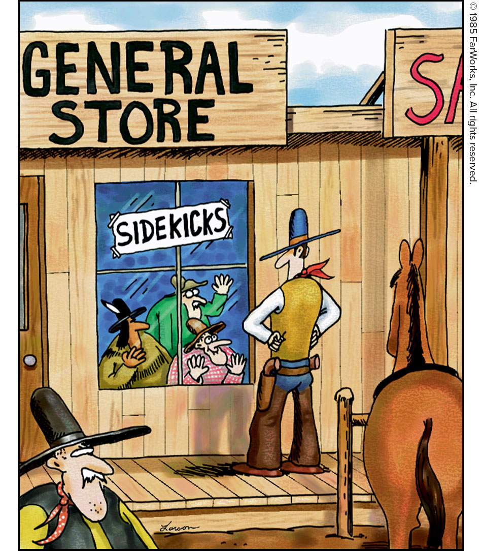 I don’t remember where I saw it, possibly Loony Toons, but there was some old skit where the sidekick got shot in the first five seconds and the hero walks over to a huge gumball machine filled with people and gets a spare sidekick for the remainder of the show.